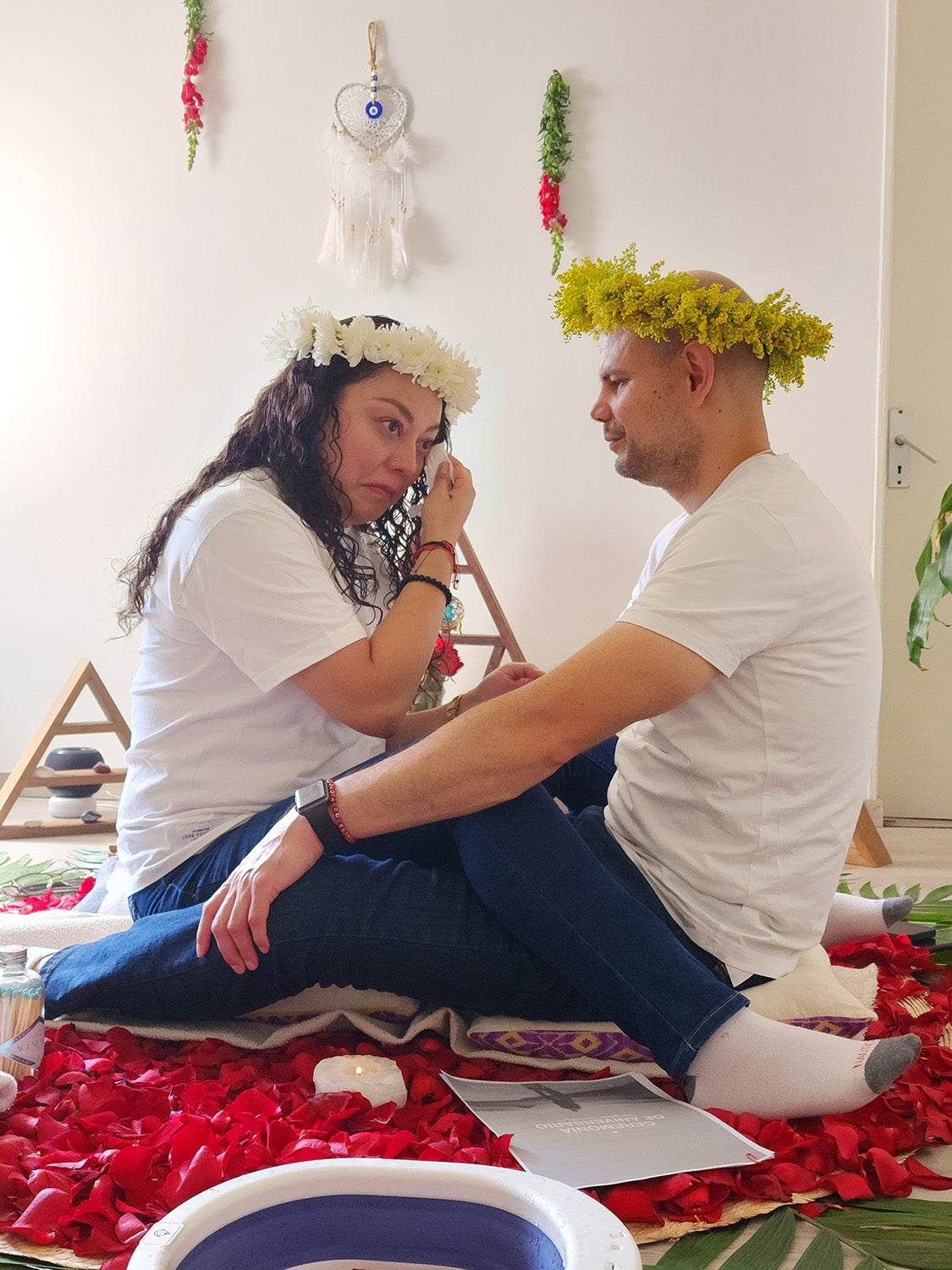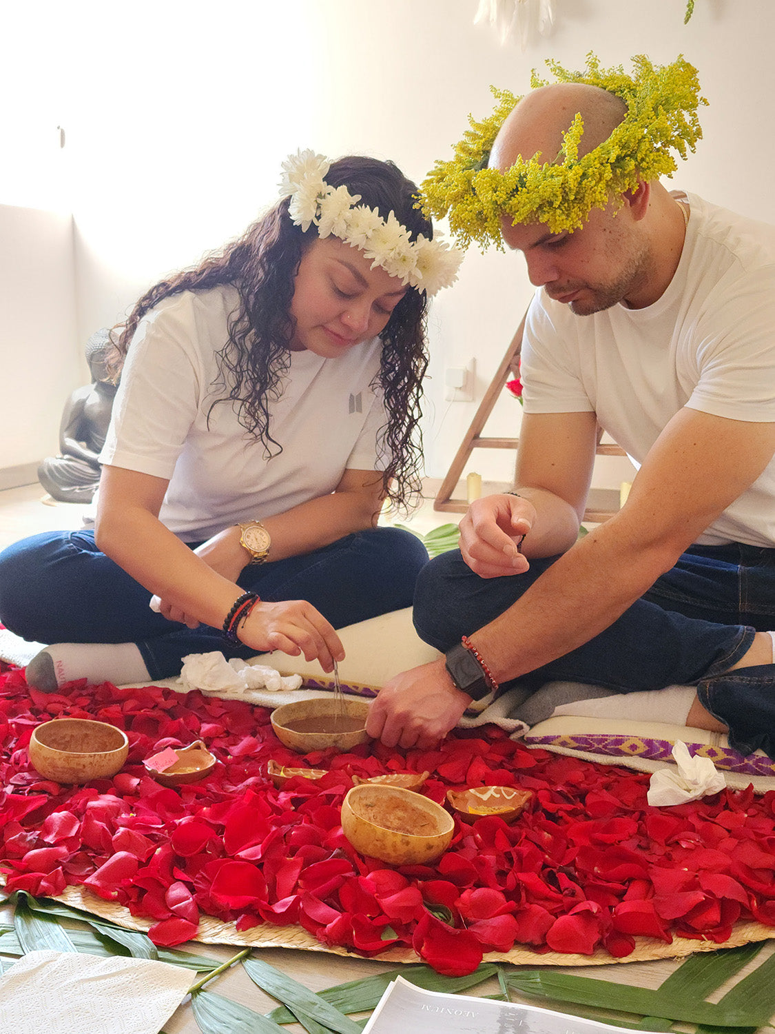 🌺Coronas de flores para ambos, como símbolo de unidad.