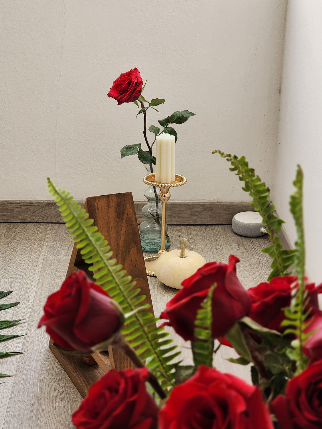 🌸 Decoración del espacio con pétalos creando una atmósfera romántica.
