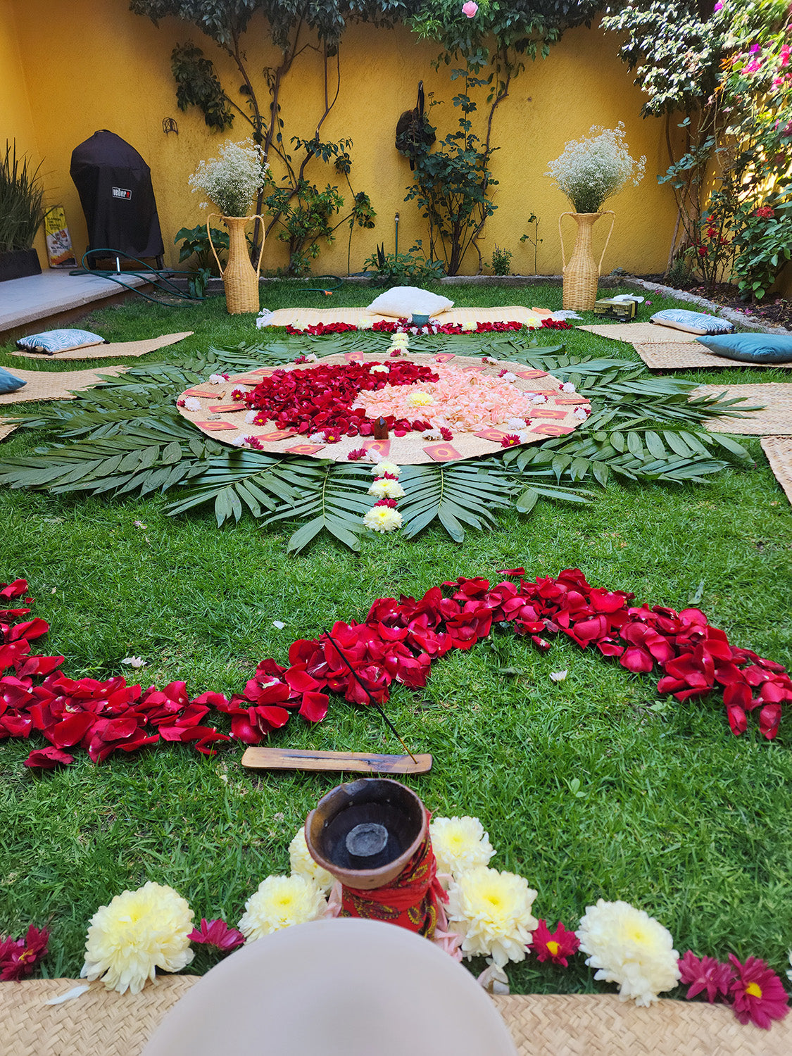 🌸 Decoración del espacio: Petates, cojines, teepee, canastas de flores, velas, oráculos, entre otros elementos que crean una atmósfera mágica.